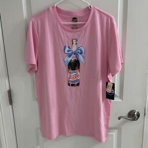Pink tee showcasing a Pepsi bottle with a blue bow design.