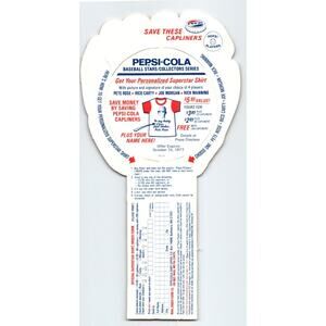 Vintage 1977 Pepsi-Cola promo baseball trading card. These were made to be inserted into cartons of soda at the Pepsi plants back in the day but most here are unused old stock. The photos of each player will punch out of the holder. The backs have a promo offer for a Pete Rose T-shirt and mail in information is on bottom. Size is 9" x 5". Super clean condition.
