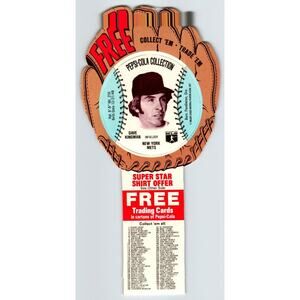 Vintage 1977 Pepsi-Cola promo baseball trading card. These were made to be inserted into cartons of soda at the Pepsi plants back in the day but most here are unused old stock. The photos of each player will punch out of the holder. The backs have a promo offer for a Pete Rose T-shirt and mail in information is on bottom. Size is 9" x 5". Super clean condition.