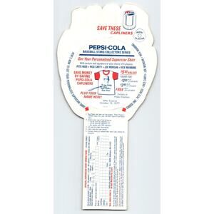 Vintage 1977 Pepsi-Cola promo baseball trading card. These were made to be inserted into cartons of soda at the Pepsi plants back in the day but most here are unused old stock. The photos of each player will punch out of the holder. The backs have a promo offer for a Pete Rose T-shirt and mail in information is on bottom. Size is 9" x 5". Super clean condition.