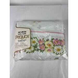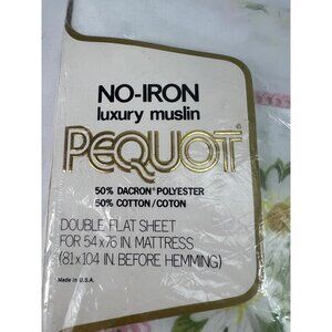 Pequot No-Iron Luxury Muslin Double Flat Sheet 81x104 In Before Hemming 50% Cott