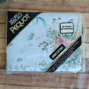 Pequot No-Iron Percale Double Flat Sheet Floral New Vintage