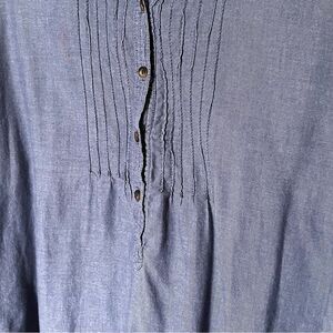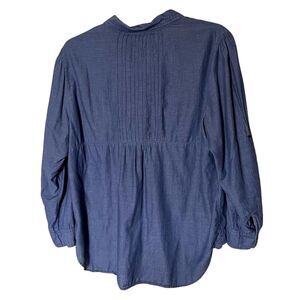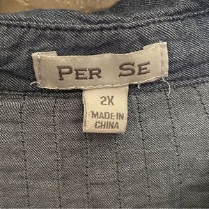 Per Se 100% Cotton Pullover Denim Chambray Top Shirt with Tab Sleeves Size 2X