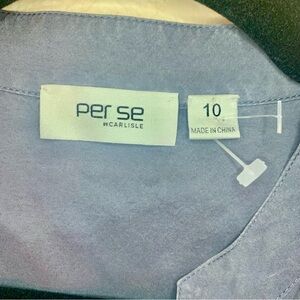 Per Se 100% Silk Romper Size 10 Carlisle Blue Grey Snap Pocket Drawstring Ties
