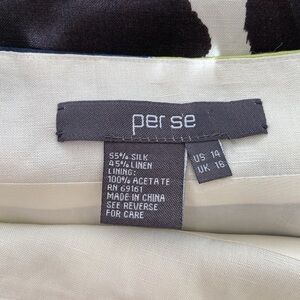 Per Se geometric linen skirt Navy, white, black, green & yellow Fully lined Side zipper with eye hook closure Measurements Waist 18.5” Length 21.5” Like new condition