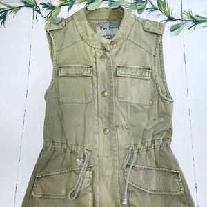 Army Green Vest with 4 front pockets. Front hidden zipper and snap closure. Drawstring waist. 100% cotton