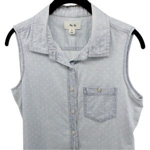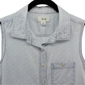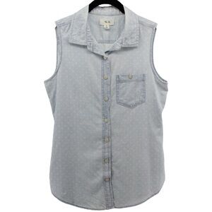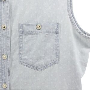 Per Se Baby Blue White Polka Dot Chambray Button up Vest Country Rodeo Size S