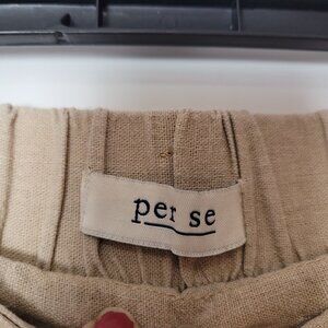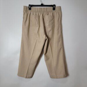 Per Se Beige Linen Blend Cropped Pants With Drawstring Waist Lg