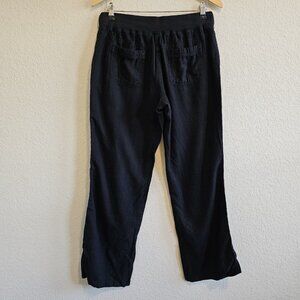 Per Se Black Linen Blend Coastal Boho Classic Pull On Drawstring Waist Pants M