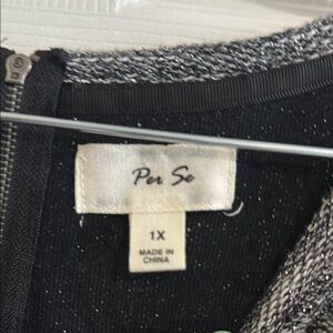 Per Se Black and Silver Knit Tunic Top Size 1X