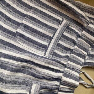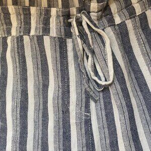 Blue striped cropped boho beachy tie waist linen blend pants from per se
