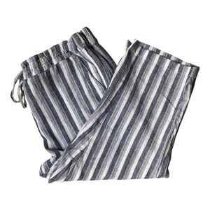 Per Se Blue Striped Cropped Linen Blend Tie Waist Beachy Boho Pants XL