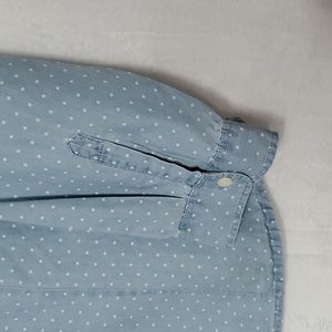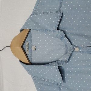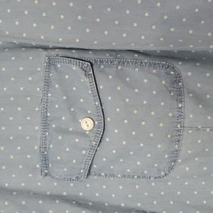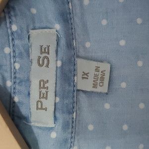 Per Se Blue and White Button Down Shirt. Great pre-owned condition with white dots and chest button pockets.