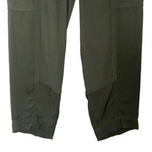 Per Se By Carlisle Women's Olive Green Gold Zip Pockets Satin Trim Pants Size 6