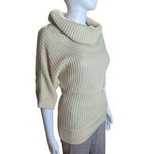 Per Se Casual Luxe Women's Cream Waffle Knit Cowl Neck Wool/Silk Sweater Sz S