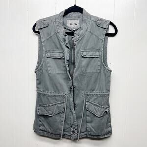 Per Se women's vest in charcoal gray. Collared. Sleeveless. Full zip and button closure. Chest and front buttoned pockets. Drawstring waist. In good used condition. No stains, tears or holes.
