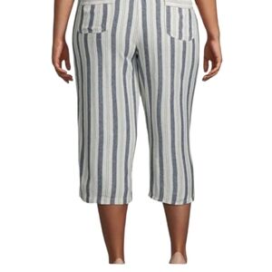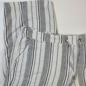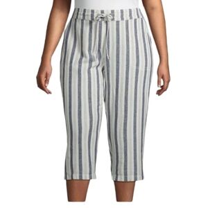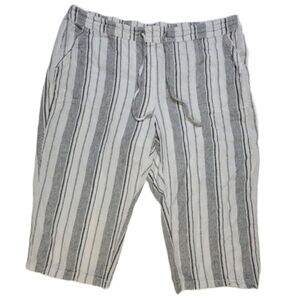 Per Se Cropped Pull On Pants Linen Blend Striped Drawstring Elastic Waistband 2X