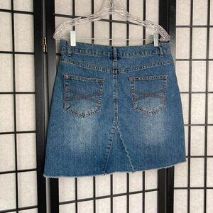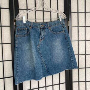 Per Se Distressed Mini Aline Raw Hem Denim Jean Skirt Blue 6 Medium