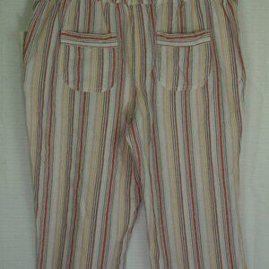 Per Se Linen Blend Pants Cropped Capri Crinkle Striped Pull-On