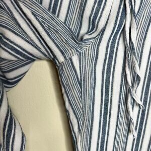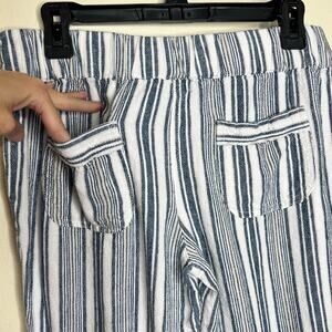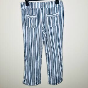 Per Se Linen Blend Pants Medium Blue White Woven Cropped Beach Casual Travel