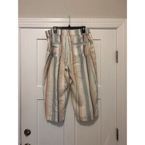 Per Se Linen Blend Summer Pants Size 1X Cropped Multicolor Striped Wide Leg