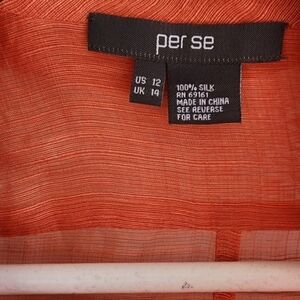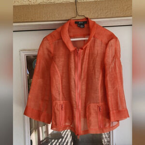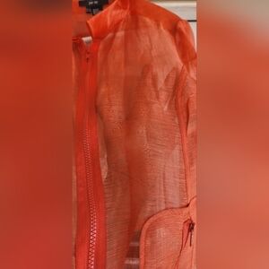 Per Se Orange coral Sheer Silk Structured textured linear Jacket Zip Up