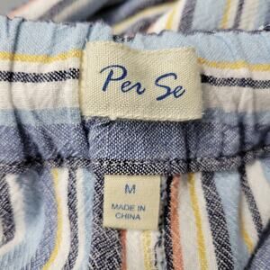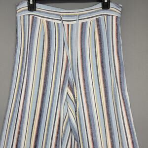 Per Se Pants Women's Medium Blue White Striped Linen Blend Wide Leg Summer Casual Boho Beachy