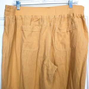 Per Se Pull On Drawstring Linen Blend Pants Yellow Gold Women's L