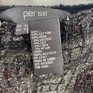 Per Se Skirt Womens Sz 8 Black Silver Metallic Wool Linen Silk Pencil Beaded 6