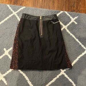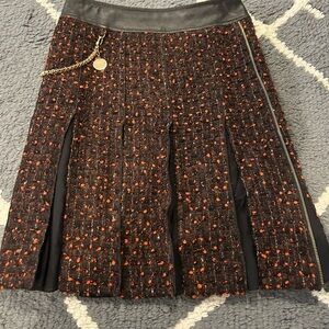 Worn a handful of times but still in great condition. Super cute chain addition to a stylish tweed skirt. Leather detailing.
