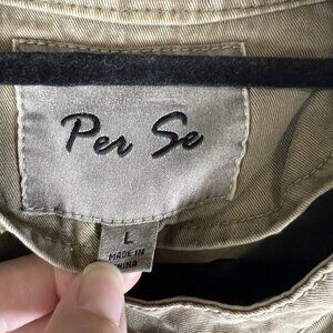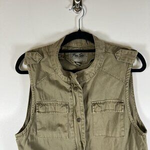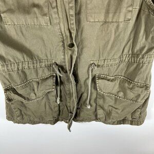 Per Se Utility Vest Womens L Army Green Pockets Drawstring Waist Jacket Military