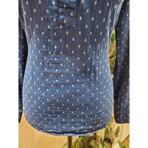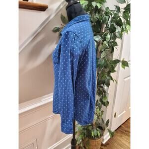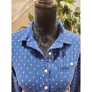 Per Se Women's Blue 100% Cotton Collared Long Sleeve Casual Button Front Shirt M