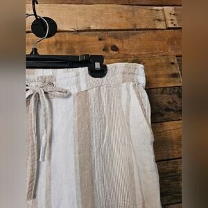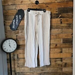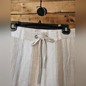 Per Se Women's Linen Off White & Tan Stripped Palazzo Pants Size PXL