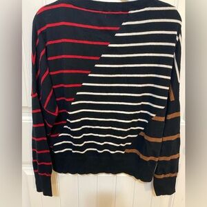 Per Se by Carlisle Black Striped Abstract Crew Neck Sweater