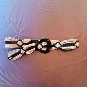 Elevate your style with this chic braided belt. Featuring a classic black and cream design, it's perfect for any outfit.