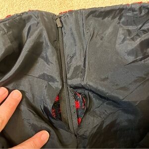This skirt is gorgeous! Perfect for winter and holiday parties. Black and Red tweed-look with floral detailing. Some of the black has a bit of shine! Hidden side Zipper.