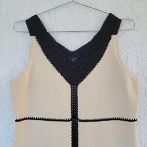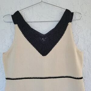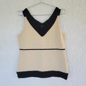 Per Se by Carlisle Sleeveless Blouse Beige Black Crochet Trim Colorblock Women Size M