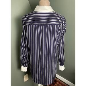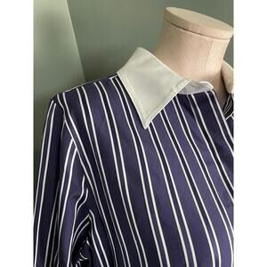 Per Se by Carlisle Women's Navy White Stripe Long Sleeve Collared Top. Size 8.