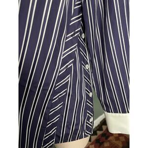 Per Se by Carlisle Navy White stripe button down cuff long sleeve Collared Top. Size 8. Great condition.