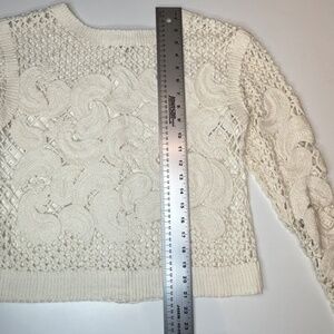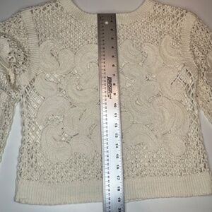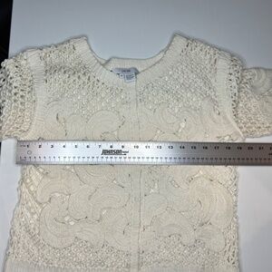 Per Se cream cotton scroll pattern knit cardigan. Size M. Excellent condition!