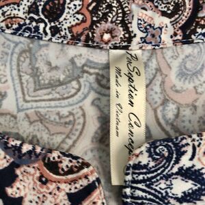 Per Seption Concept Tops Women's Size Medium Paisley Tunic Long Sleeve Crew Neck with button Down Pullover made in Vietnam, 95% polyester, 5% polyester Machine washable California proposition 65 warning