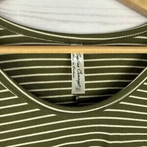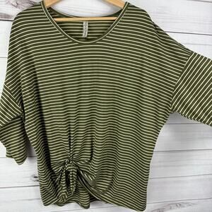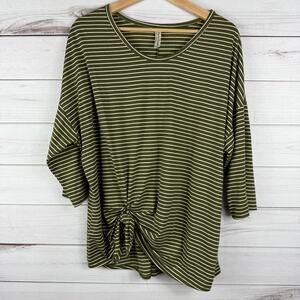 Per Seption Concept Women's Green White Striped Quarter Sleeve Tie Knot Top XL