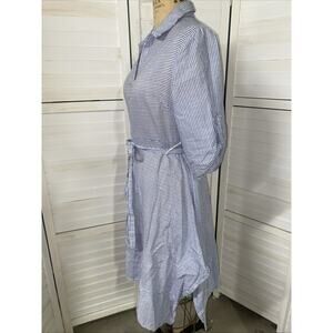 Per Seption Concept Women’s Large Striped Cotton Dress Asymmetrical Hem Roll Tab