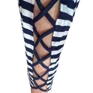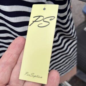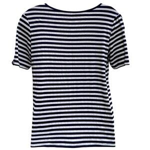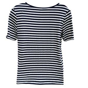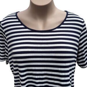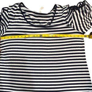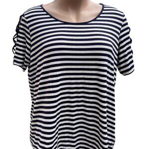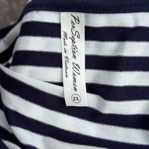 Per Seption Women Navy White Striped Top 2X Openwork Sleeves Nautical Tee NEW