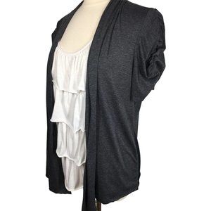Per Seption Women Top 1X Gray Cardigan Over Attached Ruffle Tank Short Sleeve