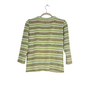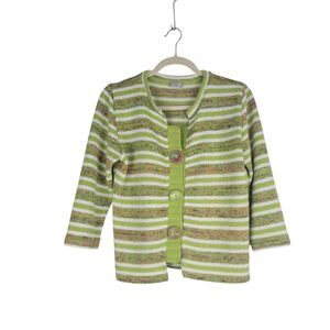 Per Una Cardigan Sweater Womens size 16 Green Striped Button Trim 3/4 Sleeves