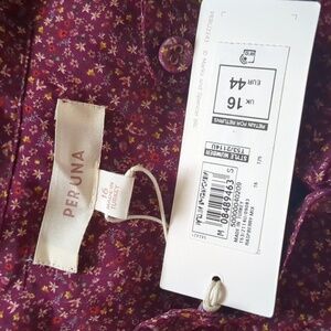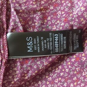 Marks and Spencer Per Una brand Long Sleeve button front raspberry mix floral pattern lightweight flowy blouse.
