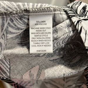 per se LINEN dress/tunic/sheath black/white/gray/pink Tropical Print Washable Linen size Medium.