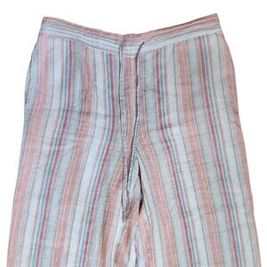 Per se Pants Womens Size L Large Pink Blue Striped Linen Blend Pull On Crop