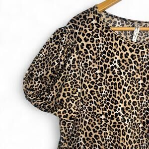 PerCeption Women's Puff Sleeve Top Blouse 2X Black Brown Chetah Animal Print
